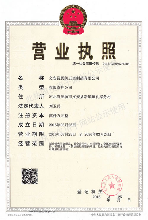 文安縣騰凱五金制品有限公司創(chuàng)建于2006年,是電纜橋架制造廠商,位于河北省文安縣新鎮(zhèn)工業(yè)區(qū),東連京開(kāi)線106國(guó)道,北接津保高速公路,背靠京九大動(dòng)脈,地處北京、天津、保定三角地帶,交通便捷,通訊發(fā)達(dá)。